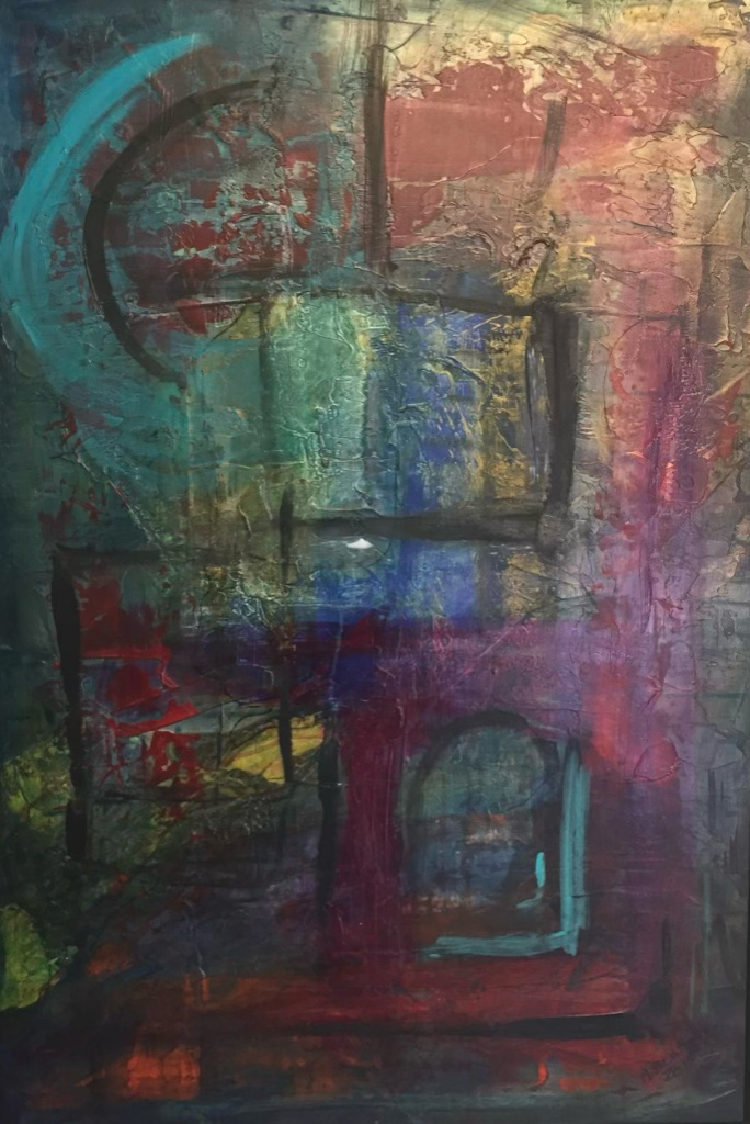 Acrylic on wood panel 24x36/PAINT OVER/ Under the Cross #2