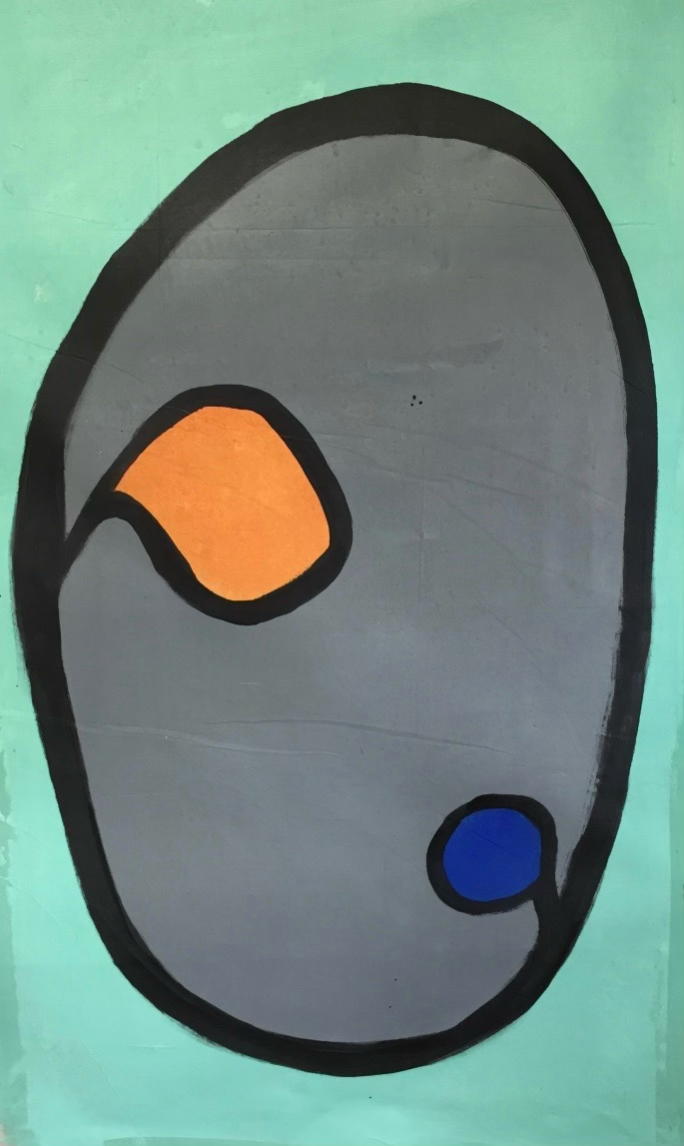 acrylic on canvas (tarp) approx 38x57 - significant fire damage