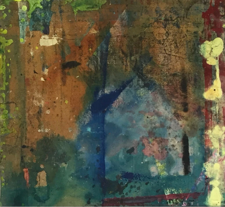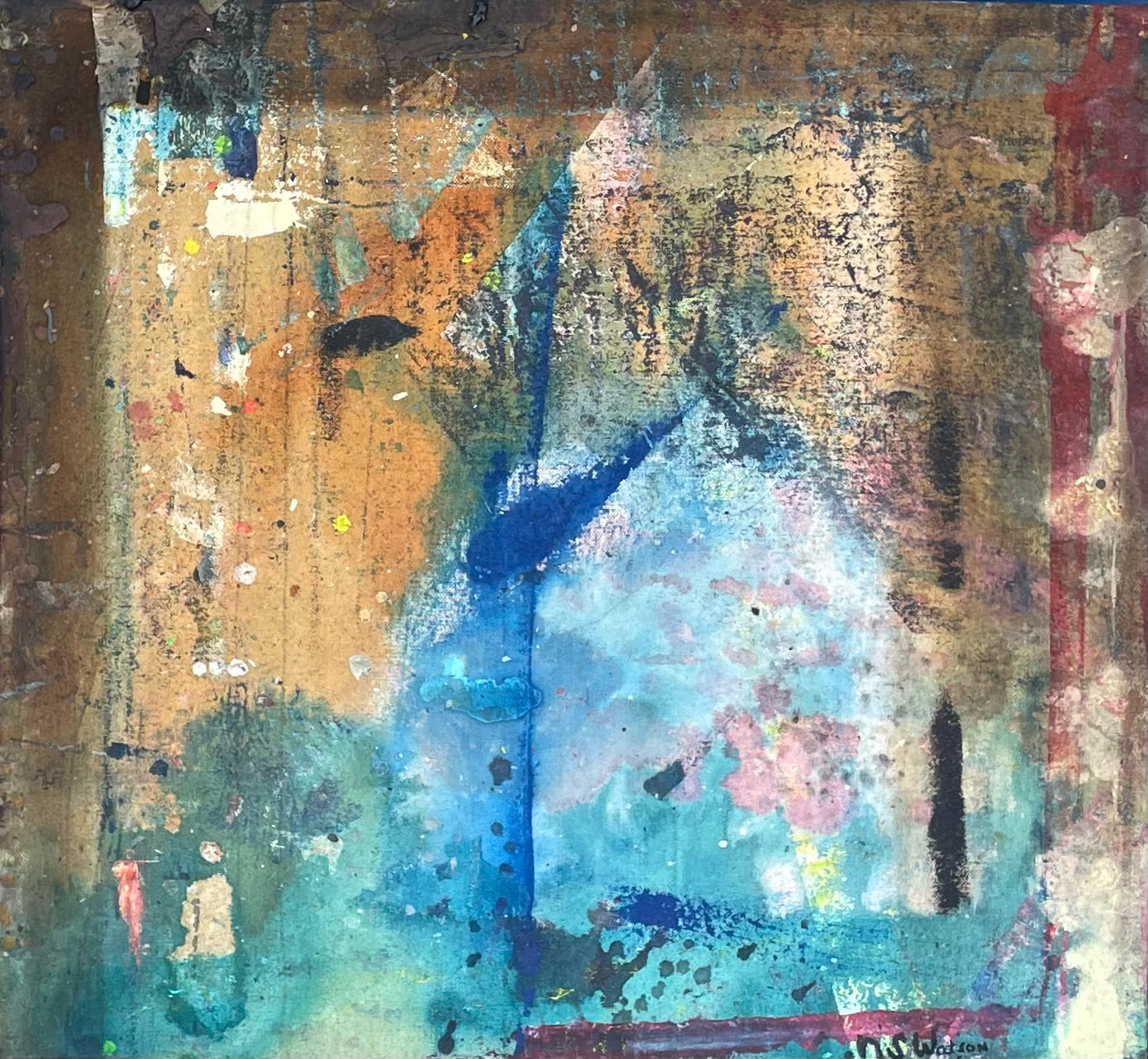 acrylic on canvas (tarp) approx 24x22 - some fire damage
